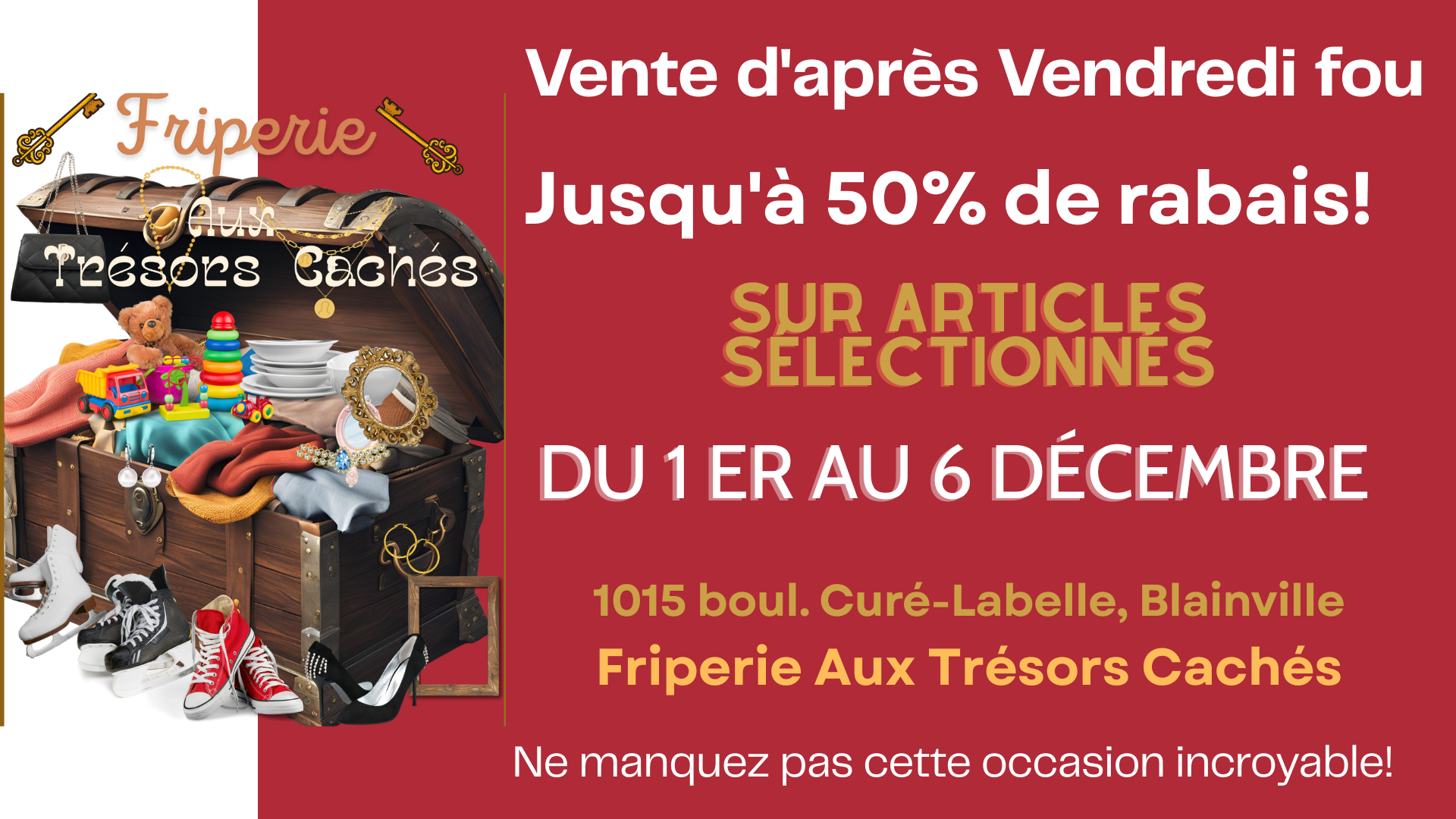 La Friperie sera fermée le 18 décembre 2025 au 11 janvier 2026.