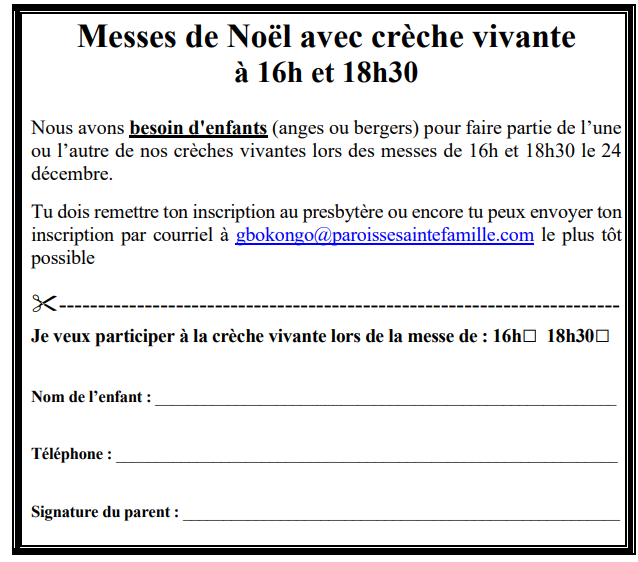 | 18h30 messe avec crèche vivante et la chorale Ashira |